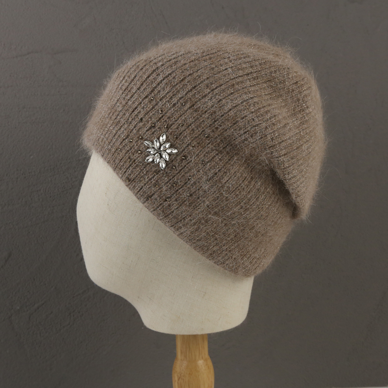 Finally, I discovered a product that sounded perfect: The Luxury Rhinestone Knit Beanie Hats Women Winter Fashion Warm Real Rabbit Fur Hats Adult Ear Protection Wool Cashmere Cap khaki-55-61cm. The name was a mouthful, but the description won me over: a primary blend of wool and cashmere, enhanced with rabbit fur for ultimate softness, designed to protect ears and provide warmth.